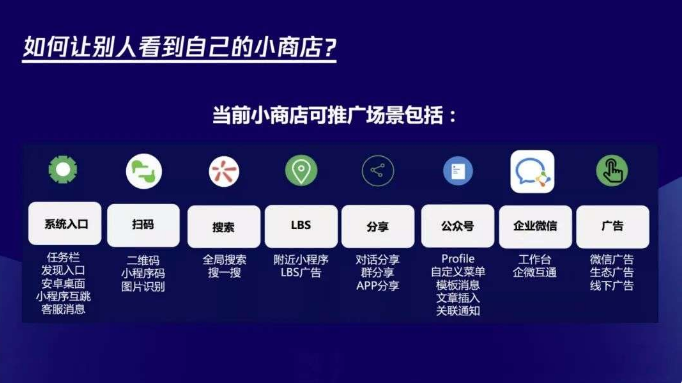 除了小商店中的工具外,很多人更關(guān)心小商店的流量問(wèn)題,事實(shí)上,小商店只是一個(gè)工具,承載交易服務(wù),本身并不自帶流量,和小程序一樣,重要的是后續(xù)如何進(jìn)行引流轉(zhuǎn)化。