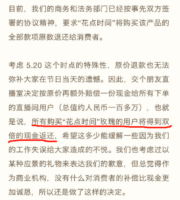 比如羅永浩作為資深營銷大師,他深知品牌信任意味著什么,因此在售后服務(wù)方面從來不縮水。當(dāng)消費者在直播間購買鮮花發(fā)現(xiàn)有問題時,他不退不讓不逃避,立刻做出雙倍現(xiàn)金返還的補(bǔ)償。
