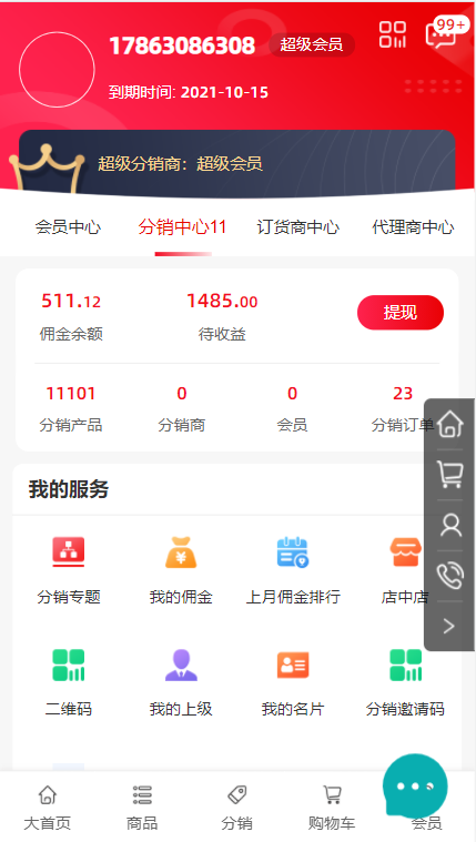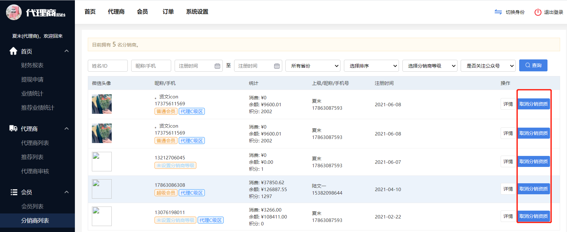 用戶場景:優化代理商管理后臺,便于代理商管理自己的分銷商和會員;