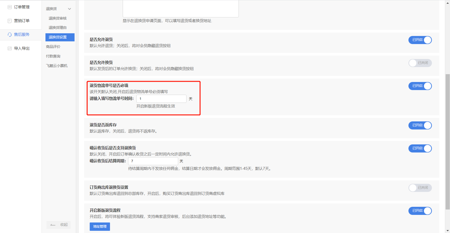 09、增加會員填寫退換貨物流單號,時間期限設置【新增】
