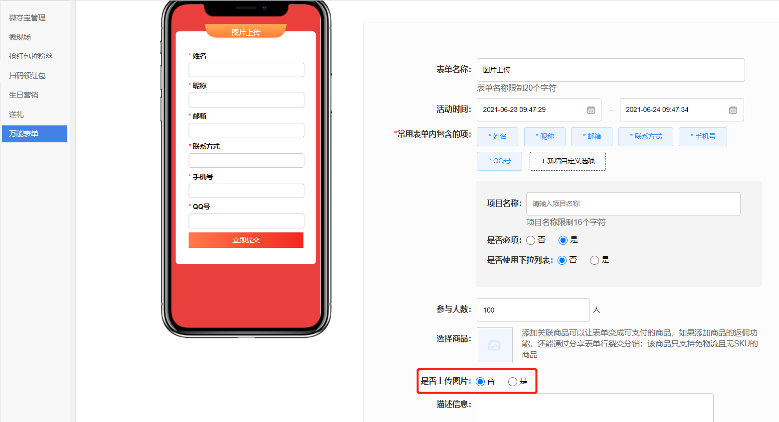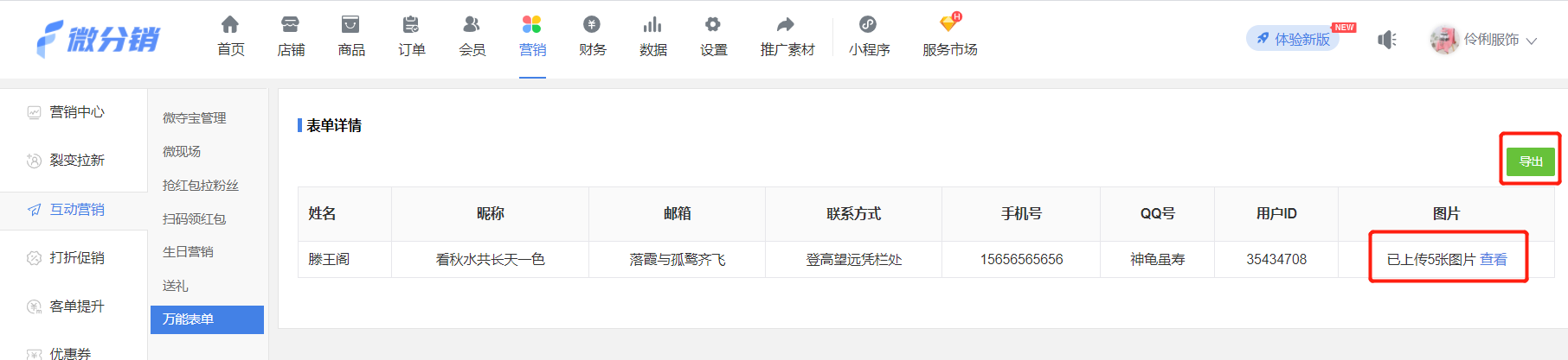 用戶場景:萬能表單新增圖片上傳,方便商戶與買家互動,新增表單數據導出功能,方便商戶管理客戶信息;