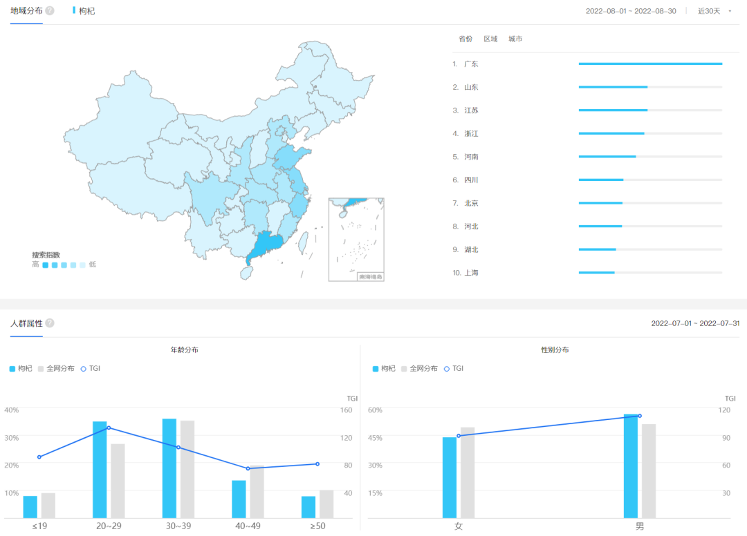 根據(jù)百度指數(shù),早康的核心人群集中在華東、華南及部分華北地區(qū),消費群體年齡層大致集中在20-29歲以及30-39歲的男性。