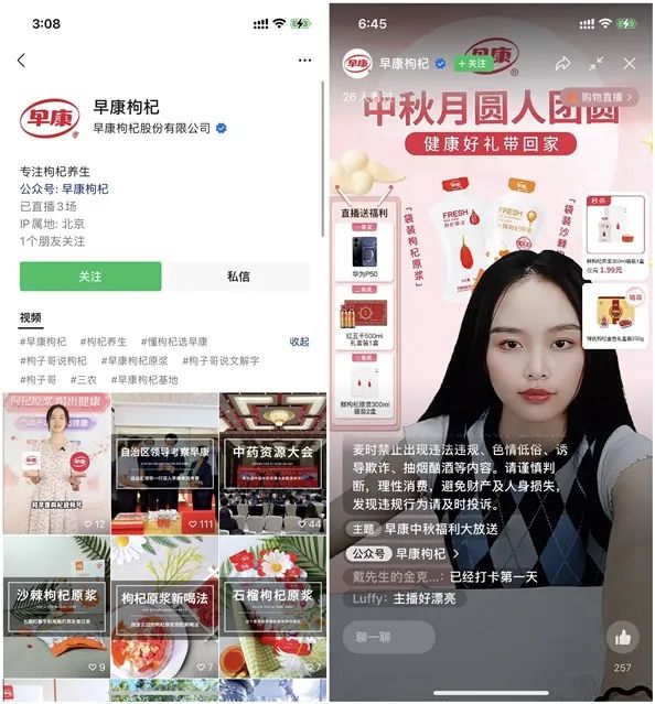 短期其實可以優(yōu)化品牌介紹、功能區(qū)關(guān)聯(lián)小程序,并在內(nèi)容和標(biāo)簽上可以重新調(diào)整,增加一些故事性的內(nèi)容,軟性植入品牌,還有枸杞的知識分享也可以結(jié)合季節(jié)去產(chǎn)出等,視頻號直播有直播過3場,可以與企微打通,并結(jié)合社群拉動用戶付費復(fù)購。