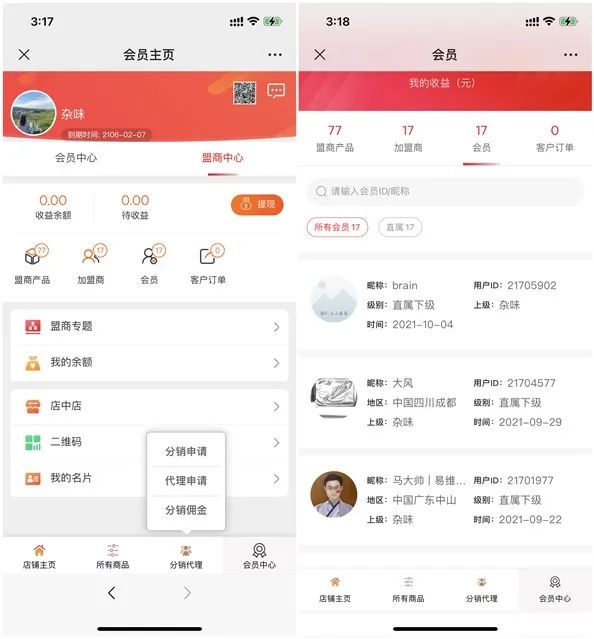 通過各種途徑關(guān)注微信公眾號進入早康枸杞微商城,就只是會員身份,屬于商城的消費者,沒有分銷特權(quán)和傭金,申請成為分銷商的會員,才有分銷特權(quán)和獲得傭金的資格。