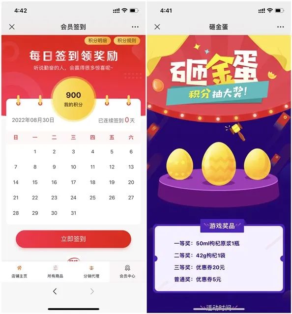 ① 參與游戲:200積分一次砸金蛋游戲,一等獎獲得500ml枸杞原漿一瓶,二等獎獲得42g枸杞1袋,三等獎獲得20元優(yōu)惠券,四等獎獲得5元優(yōu)惠券;