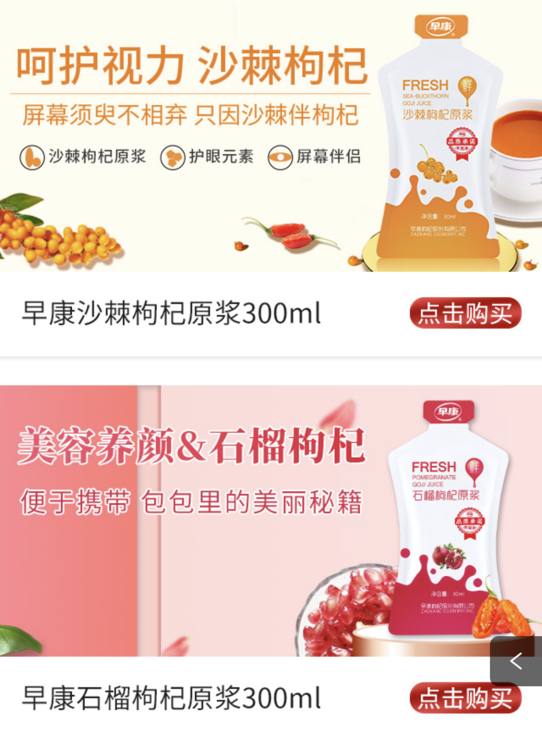 早康枸杞從功效、用途、客戶需求等多方面出發(fā),研究出了以枸杞為原材料的多個品類,比如蜂蜜、紅糖、酵素,通過不斷提升評判標(biāo)準(zhǔn),配合小規(guī)模生產(chǎn)、推廣,以此保證產(chǎn)品的受歡迎程度,最終提高用戶的復(fù)購率,激發(fā)潛在用戶的購買欲。