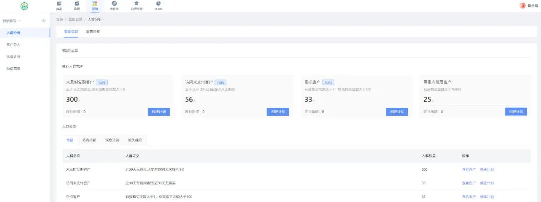 啟博智能營銷SCRM功能,對客戶從進(jìn)店-逛店-購物-離店整體消費(fèi)情況一目了然,商家可以根據(jù)數(shù)據(jù)看板快速定位目標(biāo)用戶群體,制定召回策略,實(shí)現(xiàn)精細(xì)化運(yùn)營。