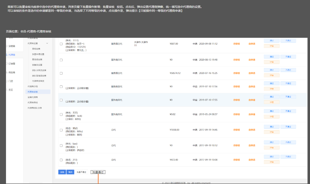 8、批量審核代理商【新增】;
