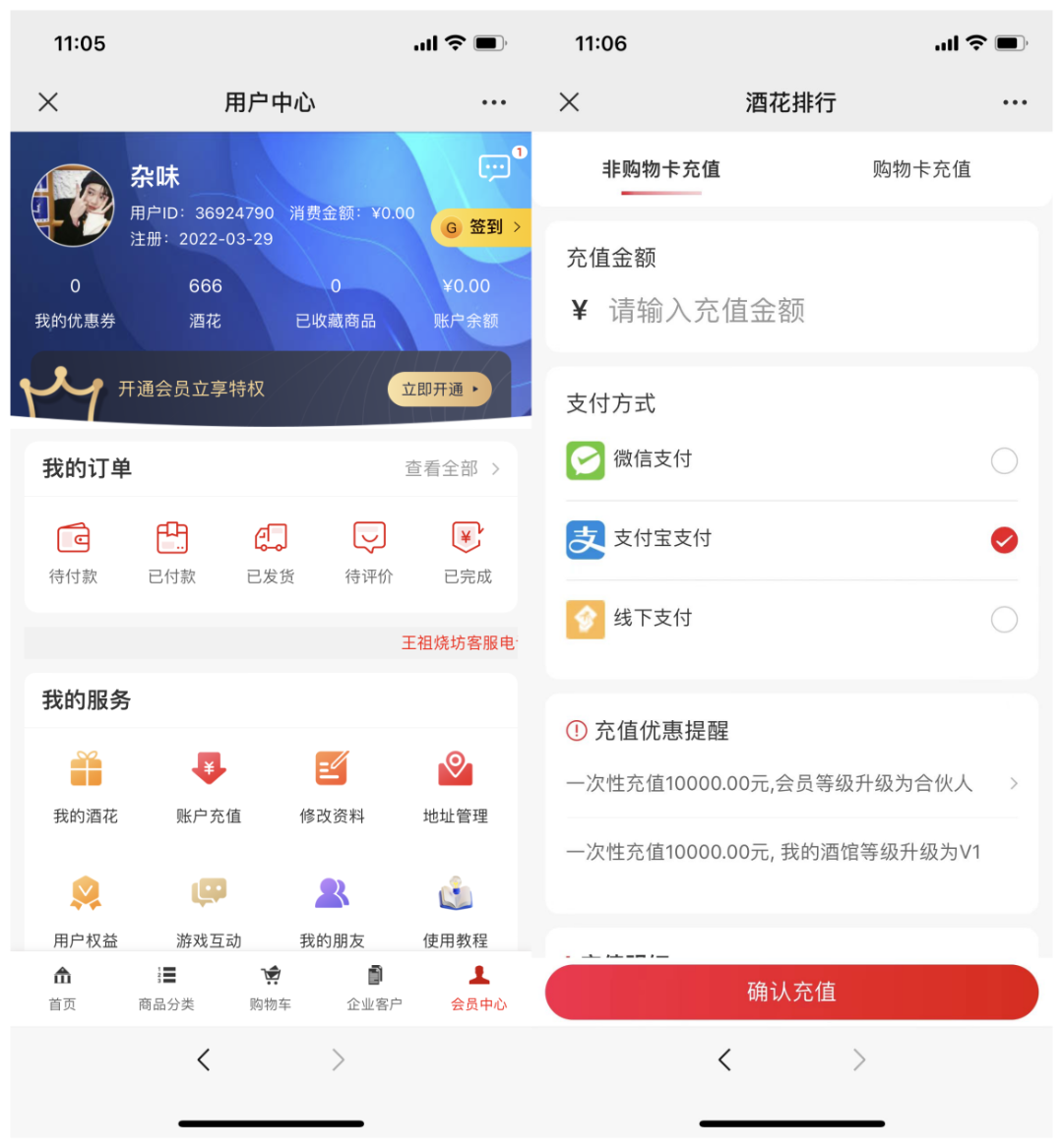 王祖燒坊小程序/微商城除了通過(guò)上線各種促銷活動(dòng)提升商城流量轉(zhuǎn)化外,還在商城內(nèi)招募分銷商、代理商,用戶購(gòu)買指定禮包即可升級(jí)為商城VIP,或者充值指定金額升級(jí)會(huì)員等級(jí),在自營(yíng)的同時(shí),發(fā)動(dòng)更多的人一起共同創(chuàng)業(yè),還無(wú)需承擔(dān)發(fā)貨、物流等問題,為商城帶來(lái)更多銷量。