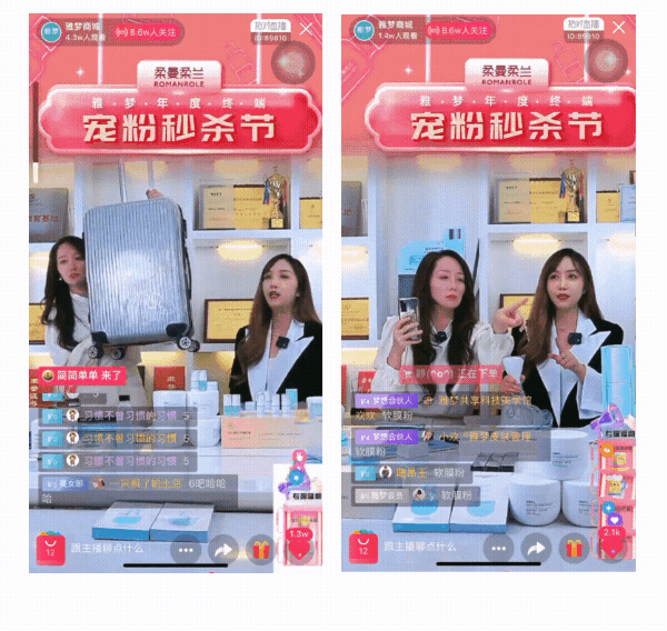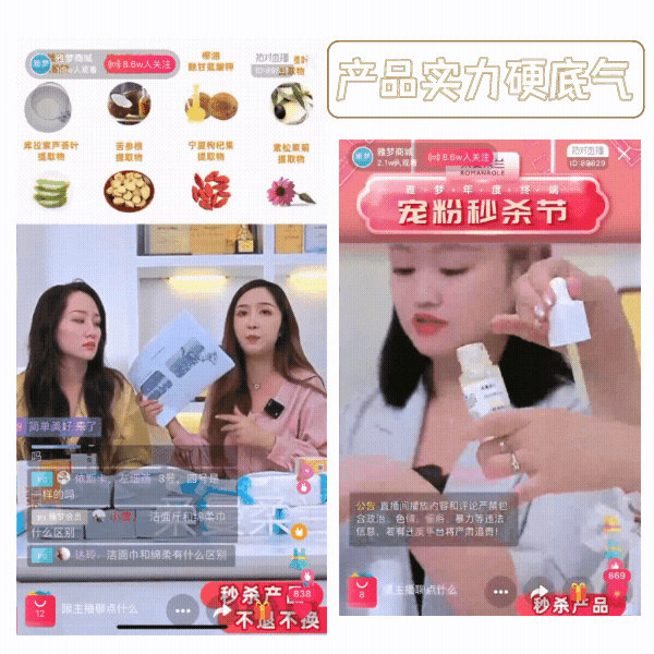 柔曼柔蘭直播間的美妝大牌爆品對于用戶有著天然的吸引力,在商品力的基礎上柔曼柔蘭直播間粉絲還能享受到秒殺特惠價。這無疑更加刺激用戶來直播間“褥羊毛”,并利用用戶“占便宜”的心理讓其養成蹲直播的習慣。