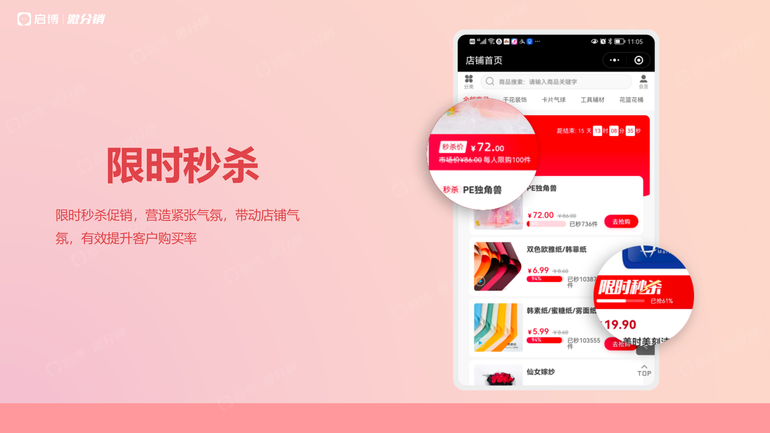 啟博“限時(shí)秒殺”功能:幫助商家解決店鋪銷量低難題