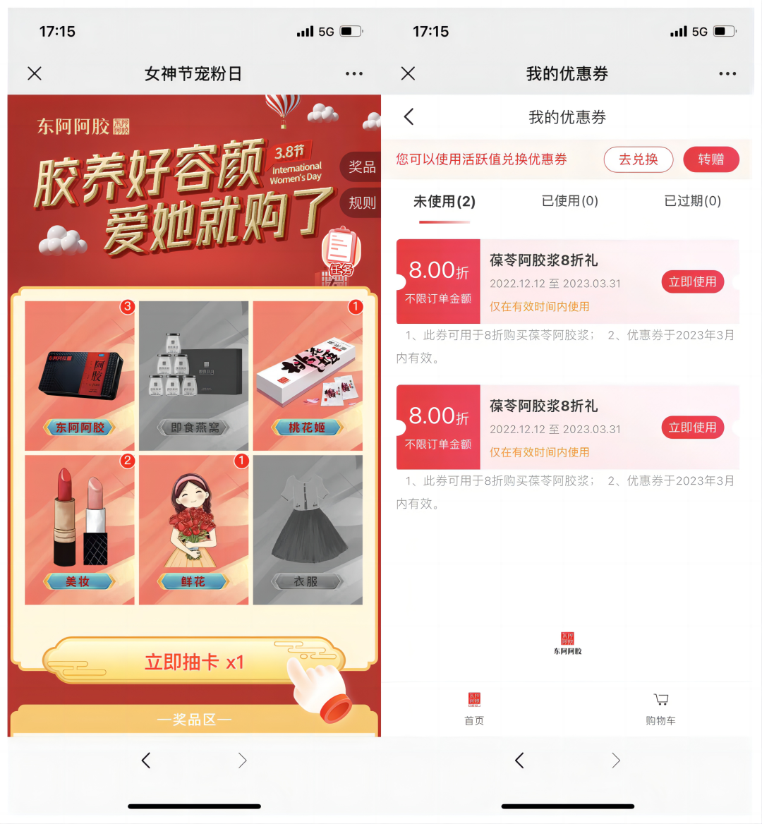 本次“女神節”節日活動以日常種草為核心,配合營銷節點的“愛美、年輕態”等關鍵詞進行營銷,上線以“女神節寵粉日,抽卡兌好禮”為主題的活動。