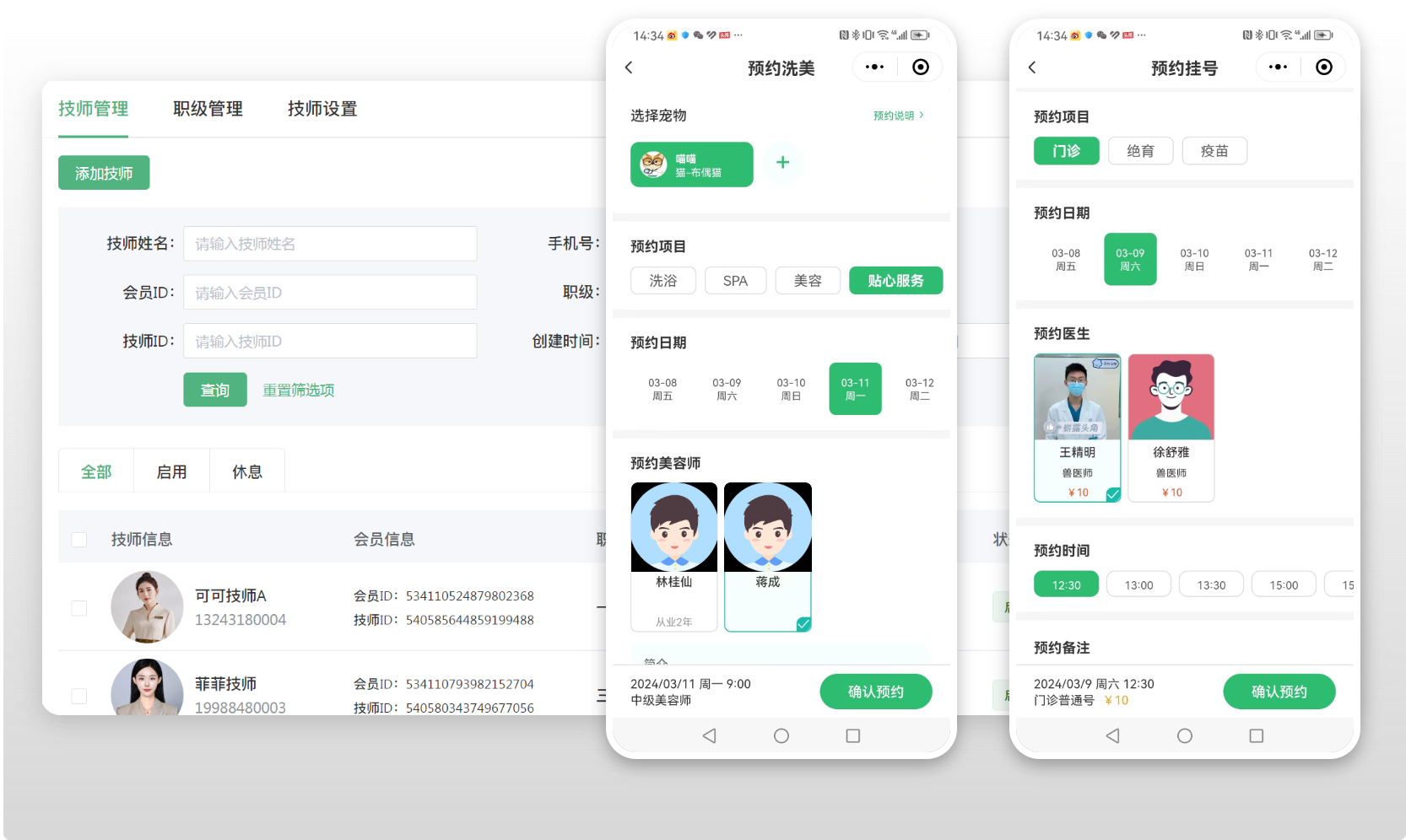 用戶端:客戶在線預約寵物服務時段,方便快速。商家端:商家可便捷查看、創建預約,實現輕松管理。設置客戶預約等消息通知,預約通知實時觸達。
