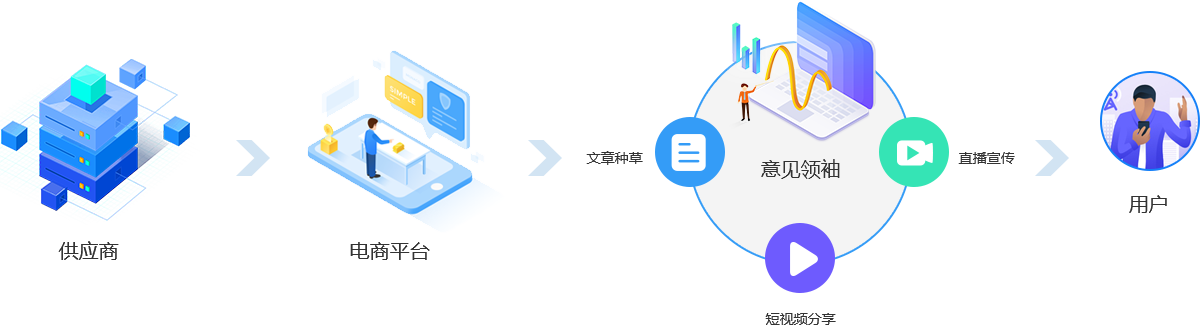 電商平臺通過KOL創造內容,以圖文+商品、直播+商品、視頻+商品及其他+商品的形式種草傳播用戶