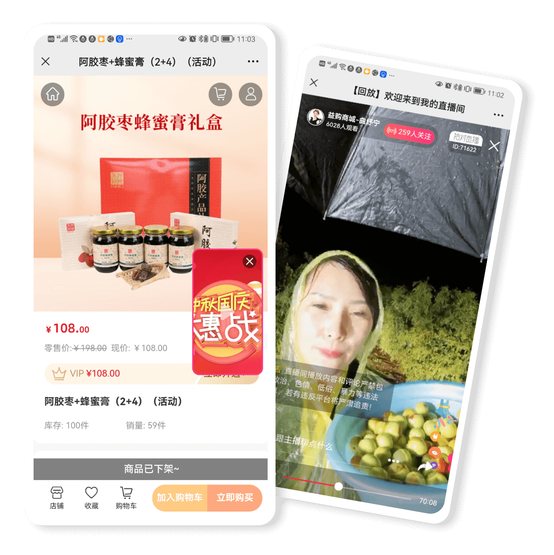 無縫對接微分銷商城,無需跳轉邊看邊買,形成引流-轉化-復購的私域營銷閉環