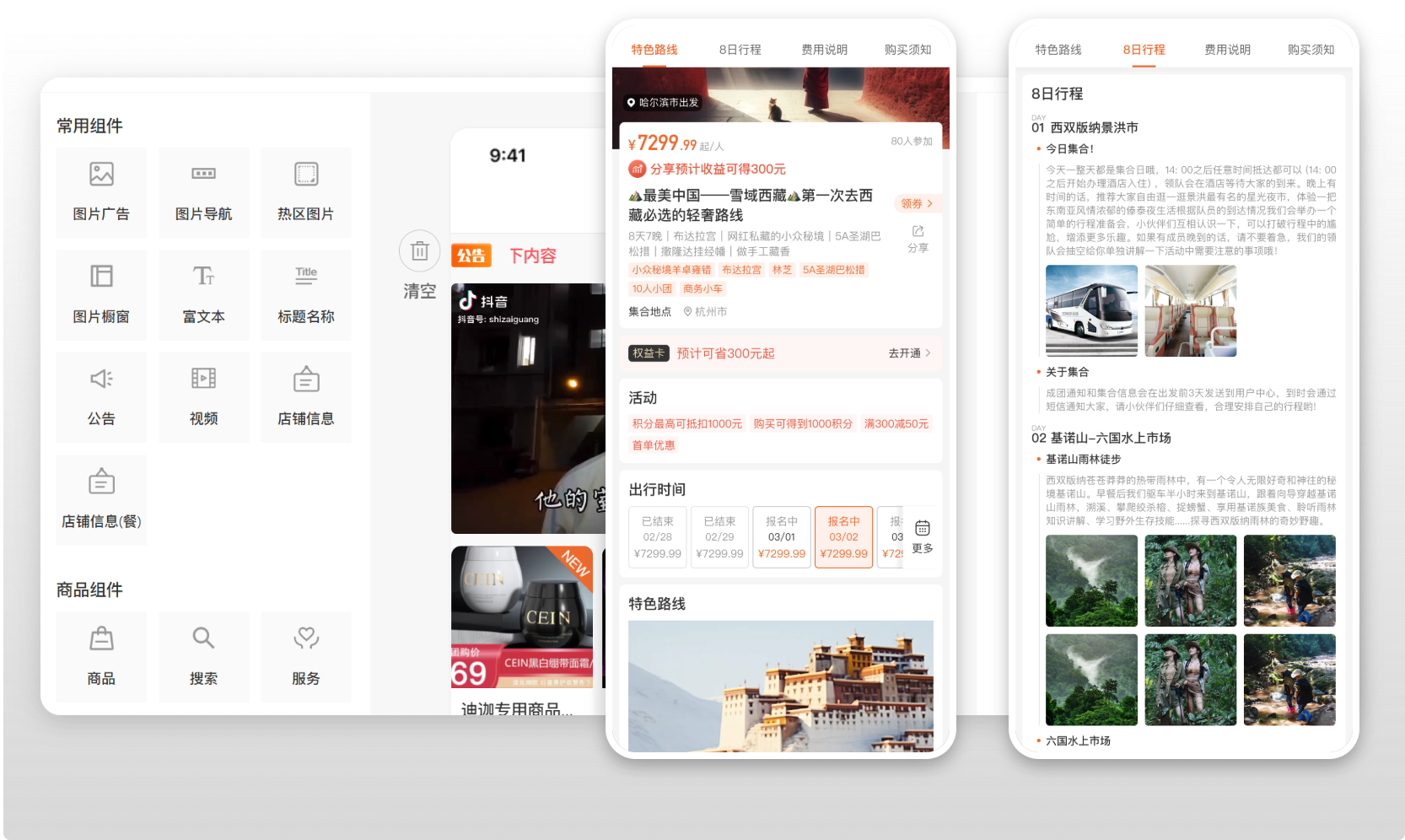 旅游小程序內(nèi)置:優(yōu)惠券、首單立減、拼團、秒殺、滿減、打折等多種營銷工具,滿足商家日常的營銷需求,幫助商家深挖用戶需求,提升用戶的購買率。